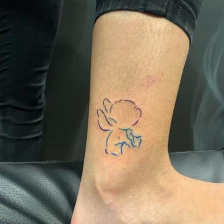 Tetování postavičky duchů na koleni