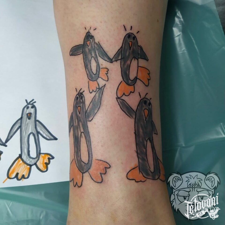Tetování postavičky na noze