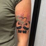 Tetování postavičky, symbol lásky, panda medvídci na paži