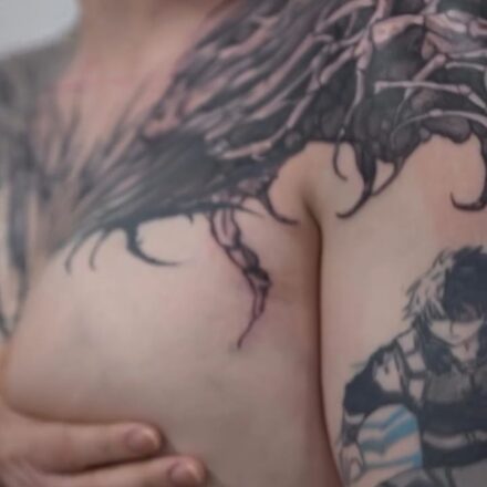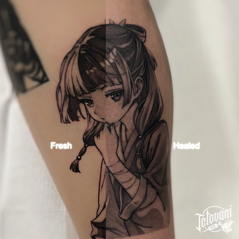 Tetování postavičky z filmů a pohádek anime na lýtko