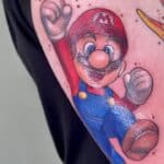 Tetování postavičky z filmů a pohádek Mario na rameno