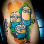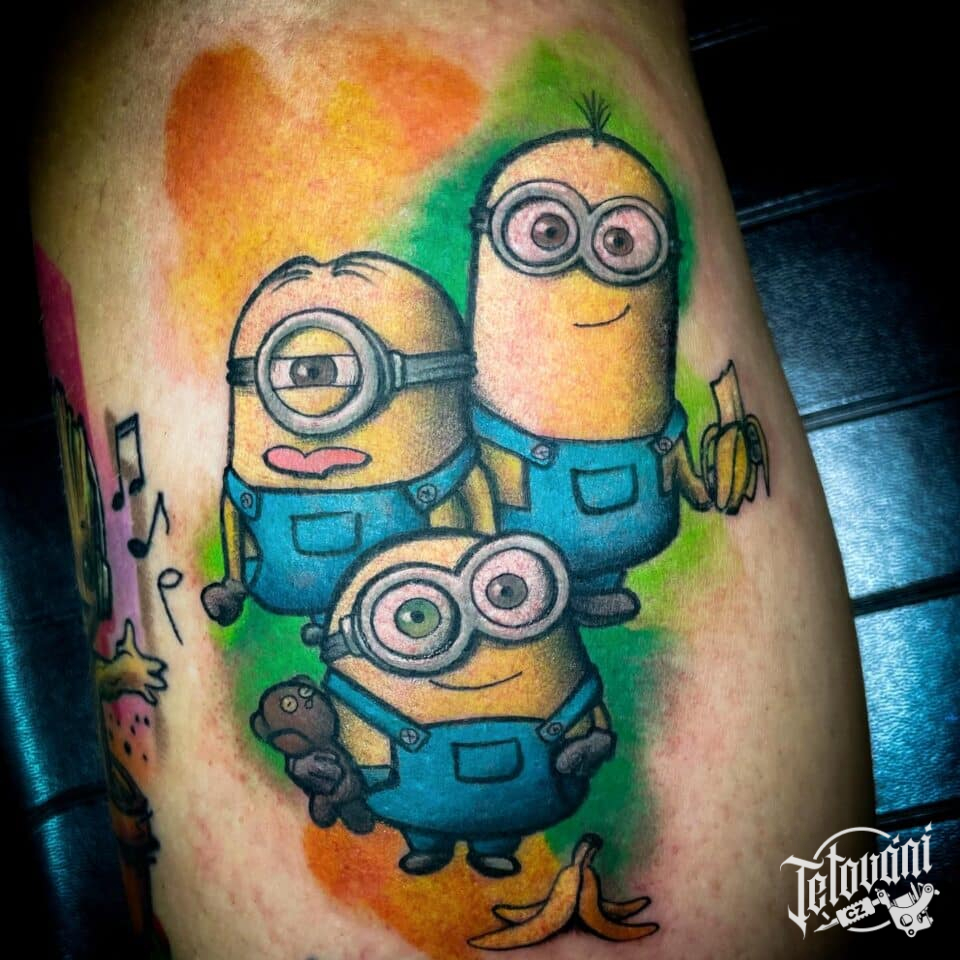 Tetování postavičky z filmů a pohádek Mimoni na holeň