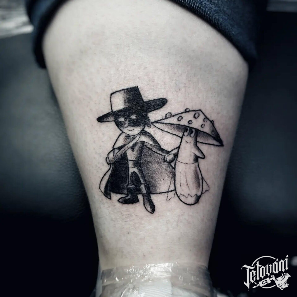 Tetování postavičky z filmů a pohádek na noze