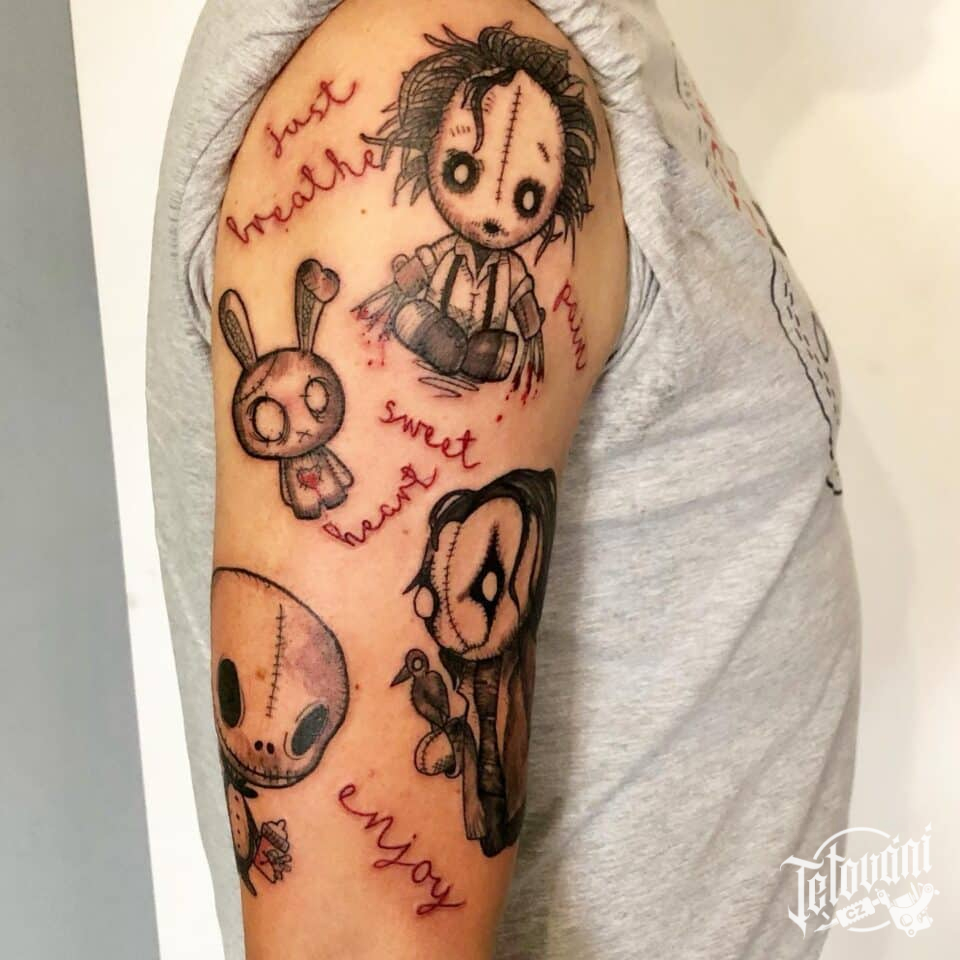 Tetování postavičky z filmů a pohádek na rameno
