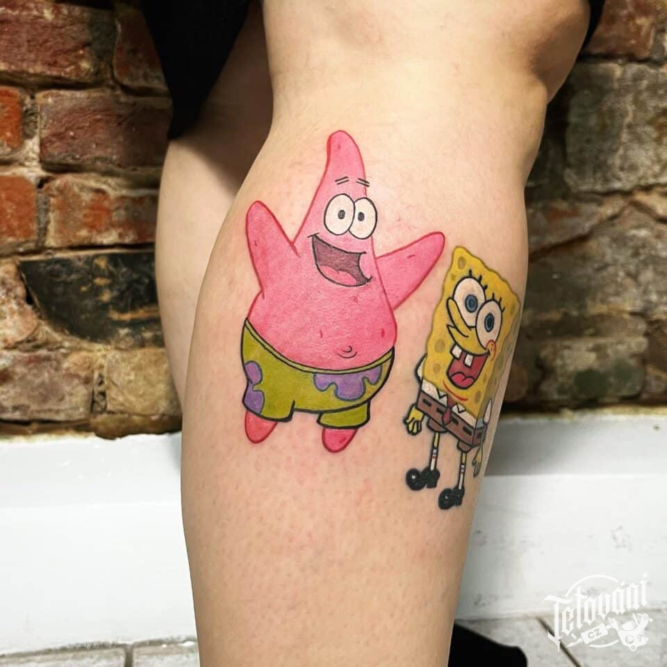 Tetování postavičky z filmů a pohádek Spongebob na lýtku