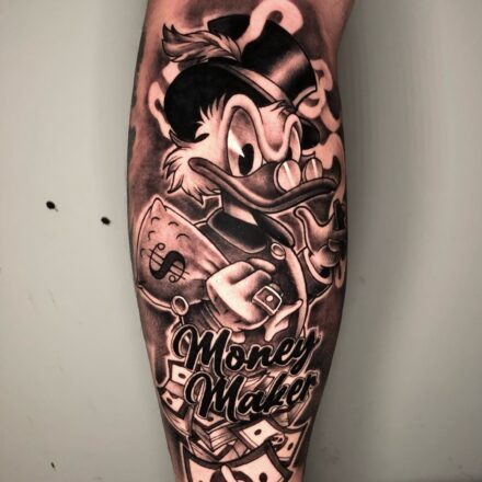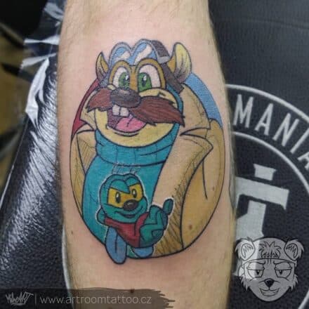 Tetování postavičky z filmů a pohádek Tom a Jerry na lýtko