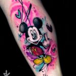 Tetování postavička Mickey Mouse z filmů a pohádek na lýtko