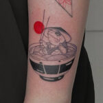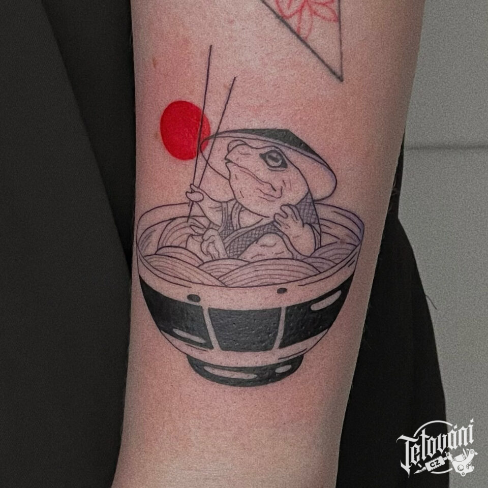 Tetování předmět a zvíře, žába v misce na předloktí
