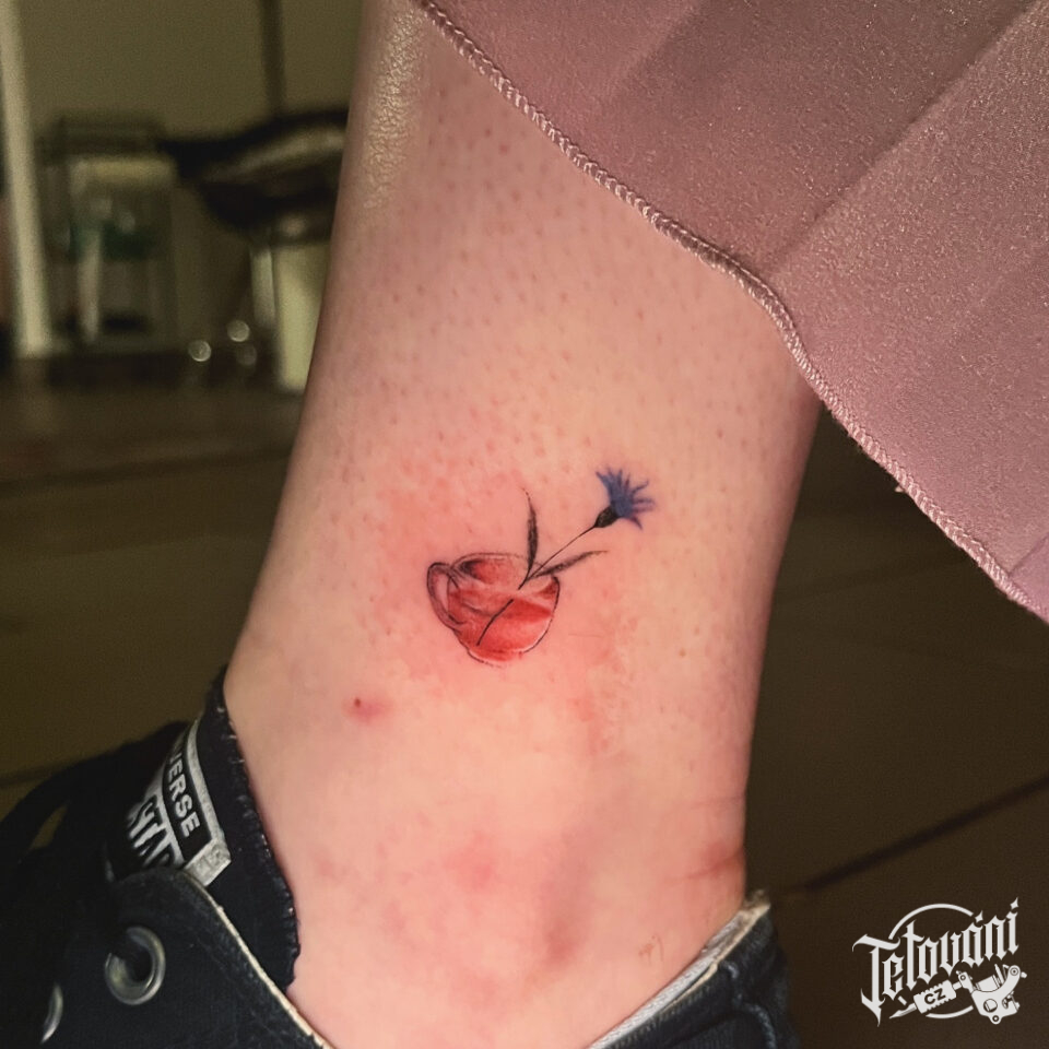 Tetování předmět hrnek s květinou na kotník