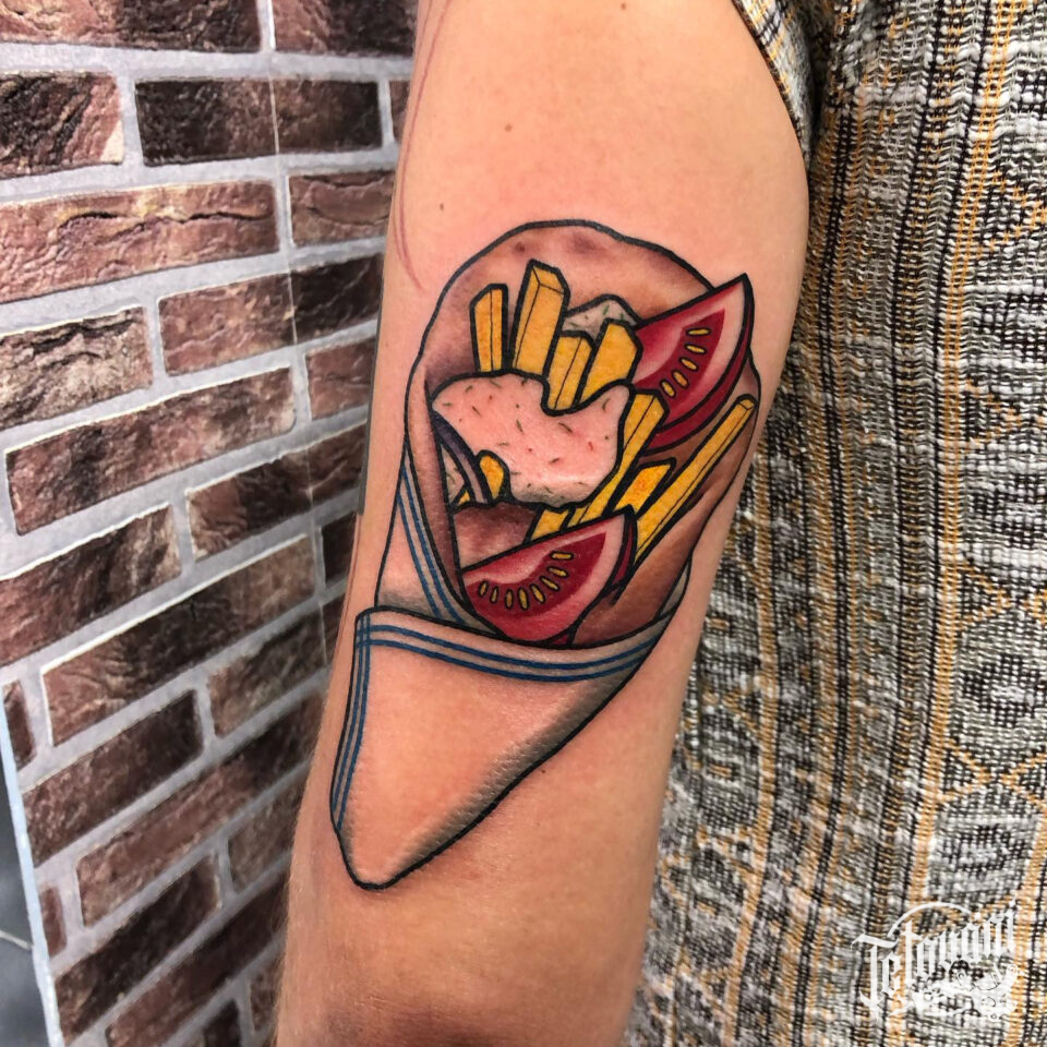 Tetování jídlo, tortilla na rameno