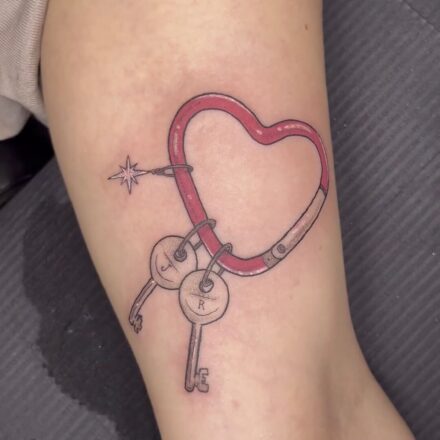 Tetování předmět, klíč, nápisy, řetěz na hřbetu ruky