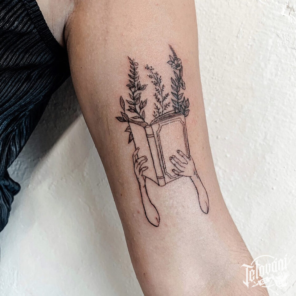 Tetování předmět, kniha v rukou na ruce