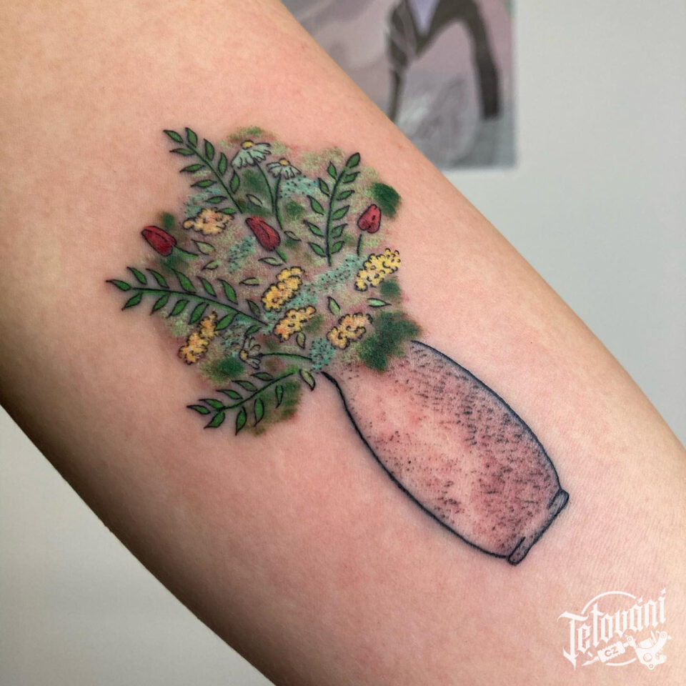 Tetování předmět, květiny ve váze na předloktí