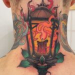 Tetování předmět, lucerna se svíčkou, oheň na krku