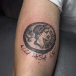 Tetování předmět, mince a nápisy na ruce