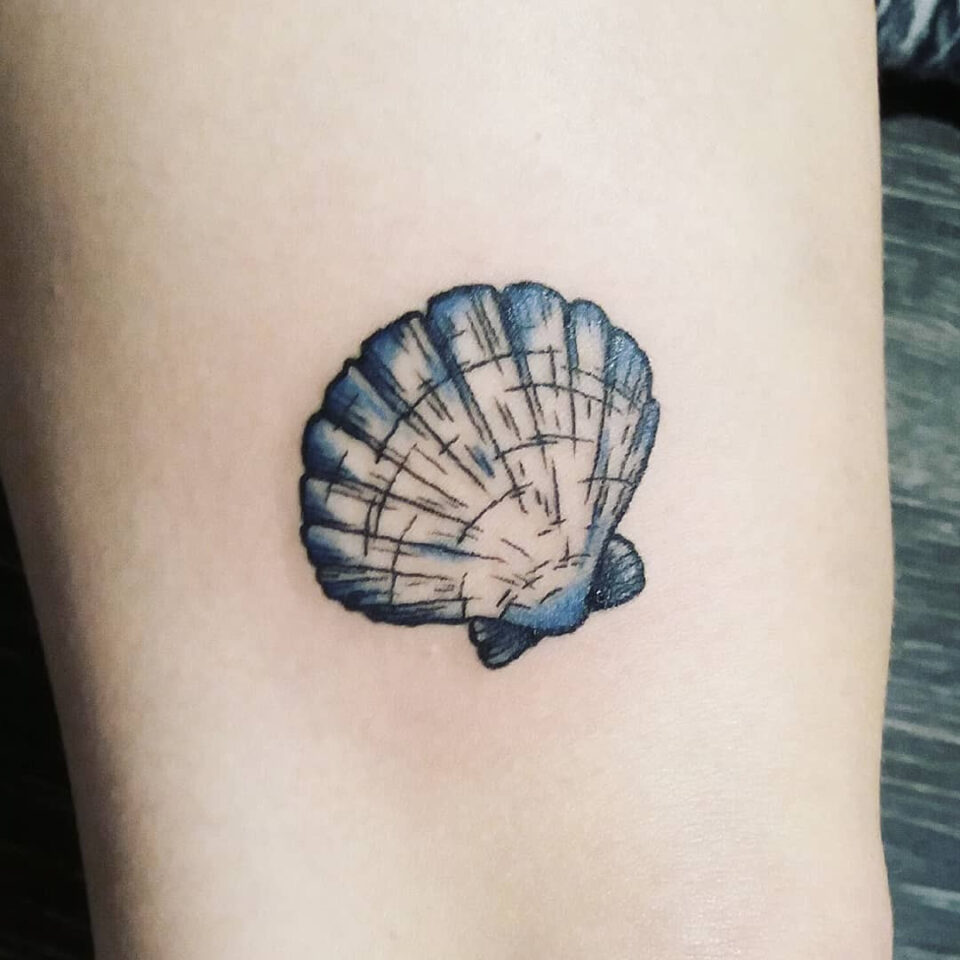 Tetování předmět moře, mušle na stehně