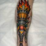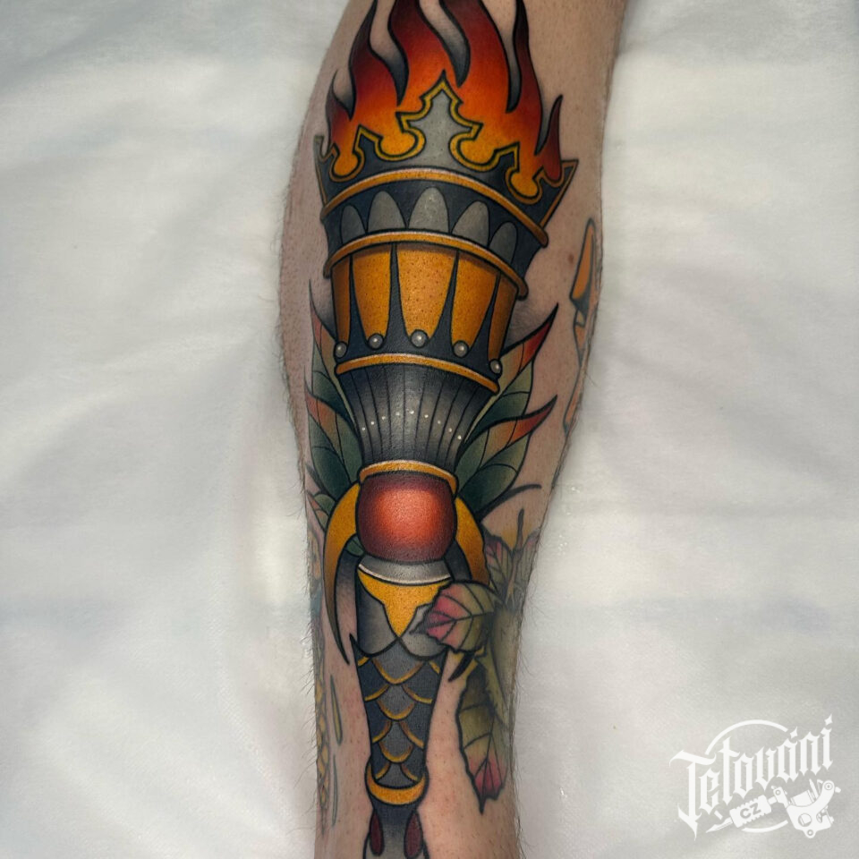 Tetování předmět ohnivá louč na holeň