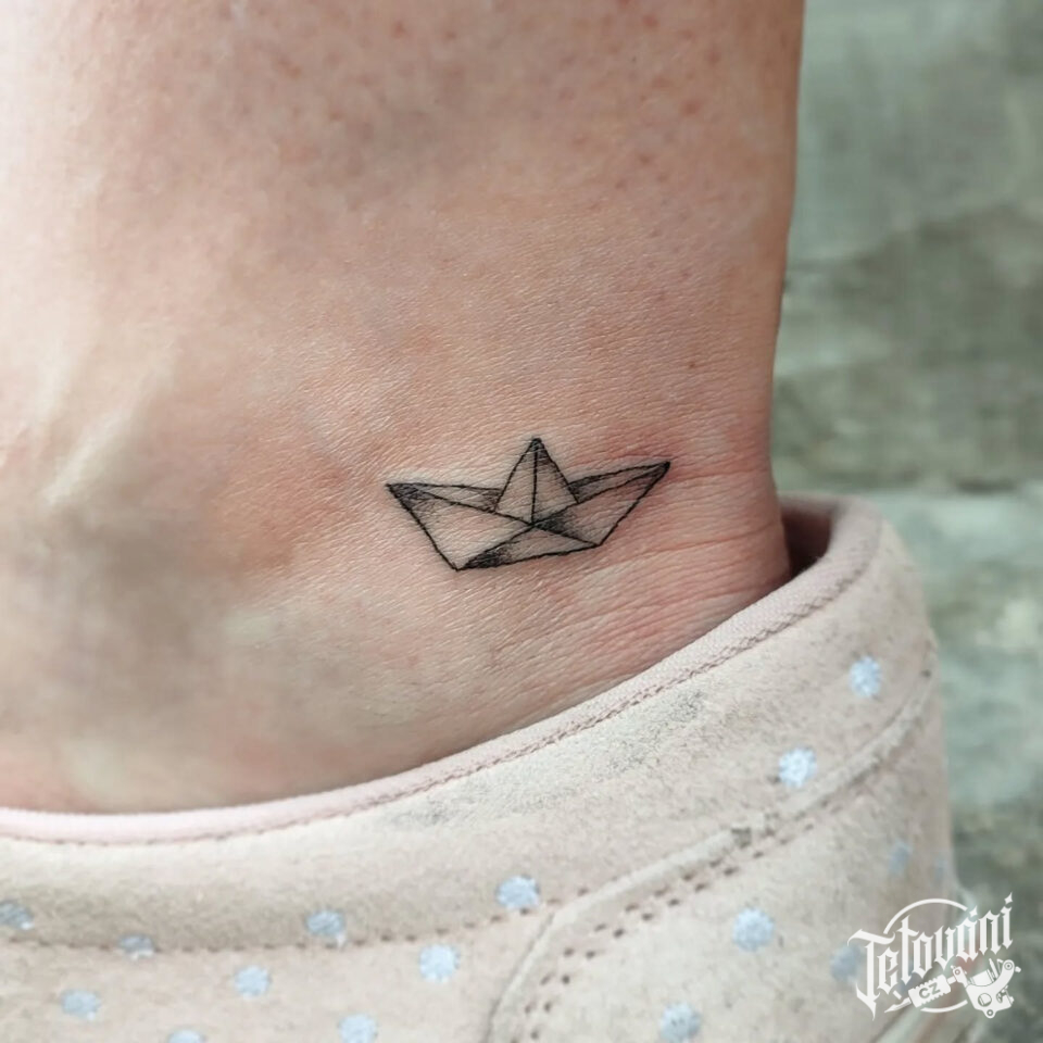 Tetování předmět, papírová loďka na kotník