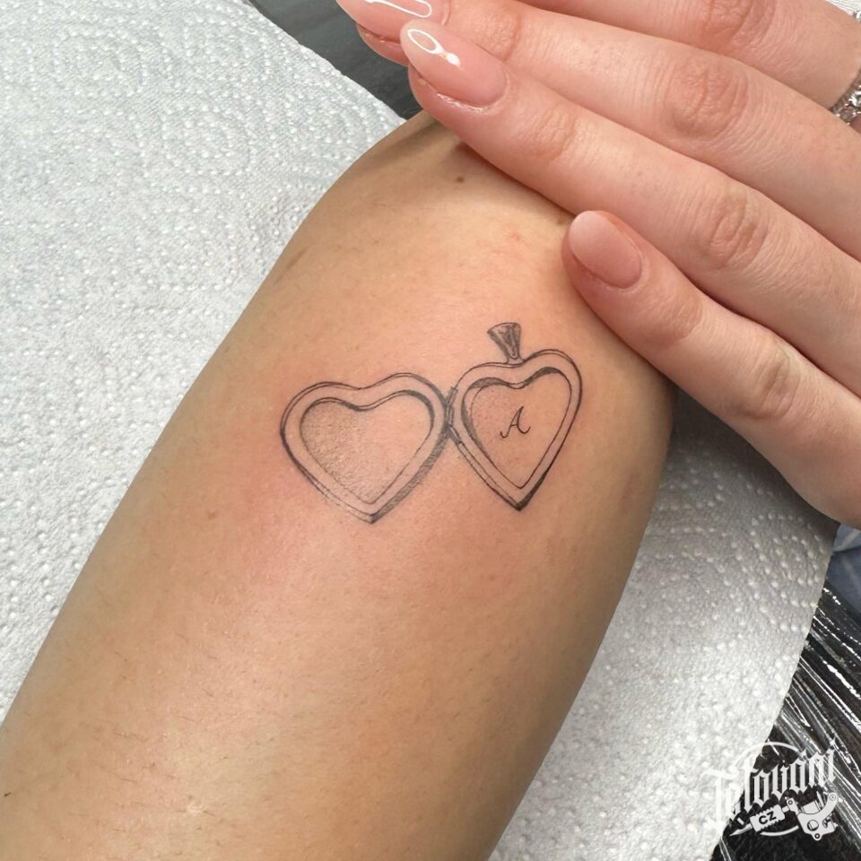 Tetování předmět, přívěšek srdce s písmenem A na předloktí