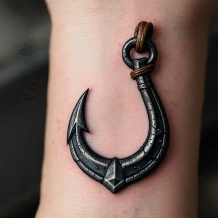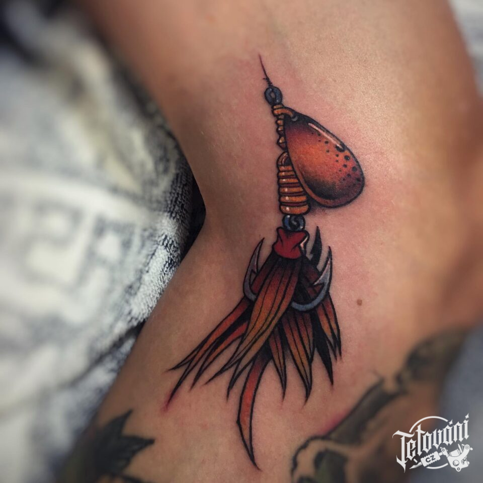 Tetování předmět, rybářský háček na loket