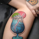 Tetování předmět sklenice s drinkem jako symbol svobody, štěstí na lýtko
