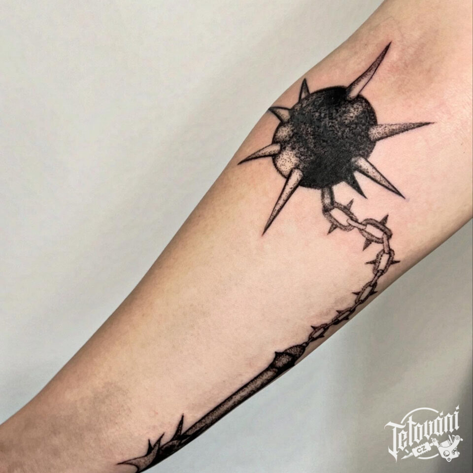 Tetování předmět středověká zbraň na předloktí