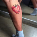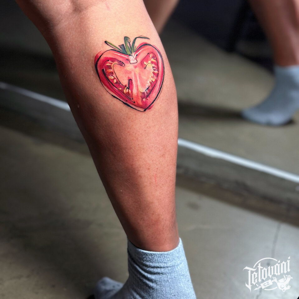 Tetování předmět, symbol zdraví, rajče na lýtku