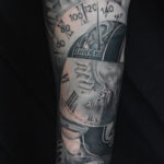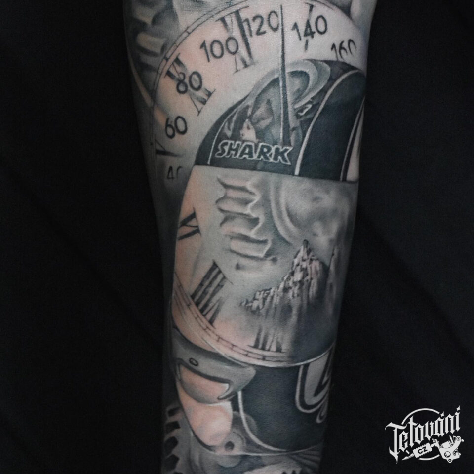 Tetování předmět, tachometr a hodiny na předloktí
