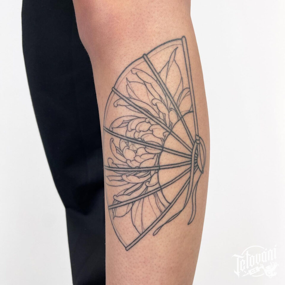 Tetování předmět, vějíř na lýtko