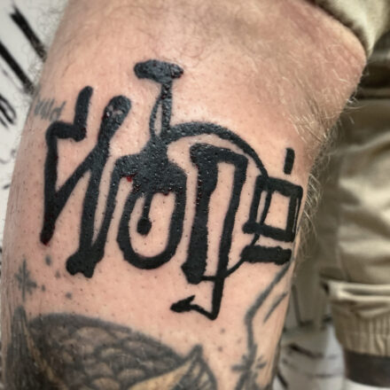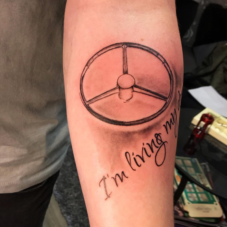 Tetování předmět, volant, nápisy na předloktí