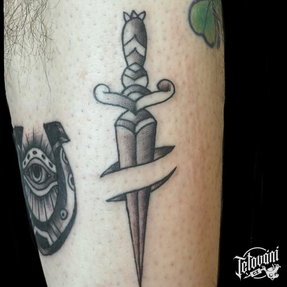 Tetování předmět, zbraň, dýka na holeni