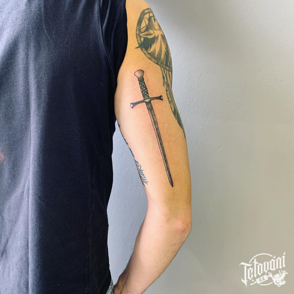 Tetování předmět, zbraň, meč na ruce