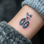 Tetování předměty a jména dětí, nápis Pavlík a botičky na předloktí