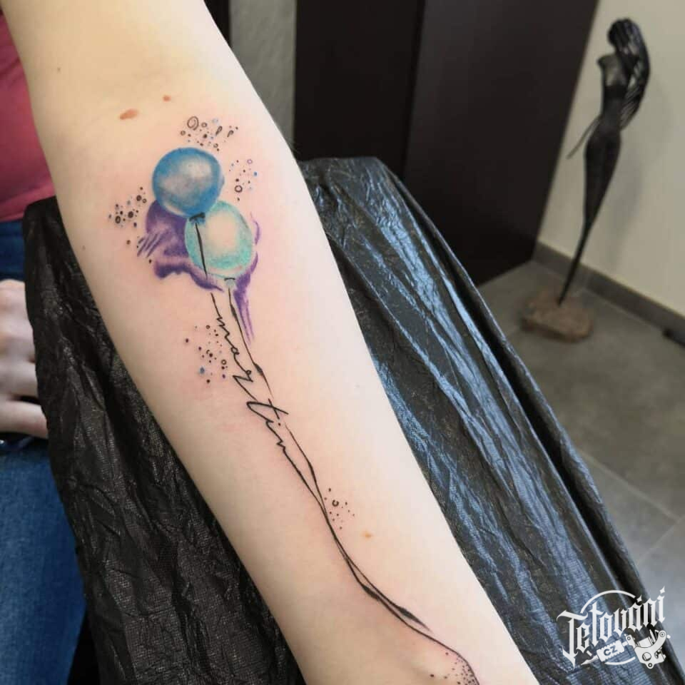 Tetování předměty, balónky na předloktí