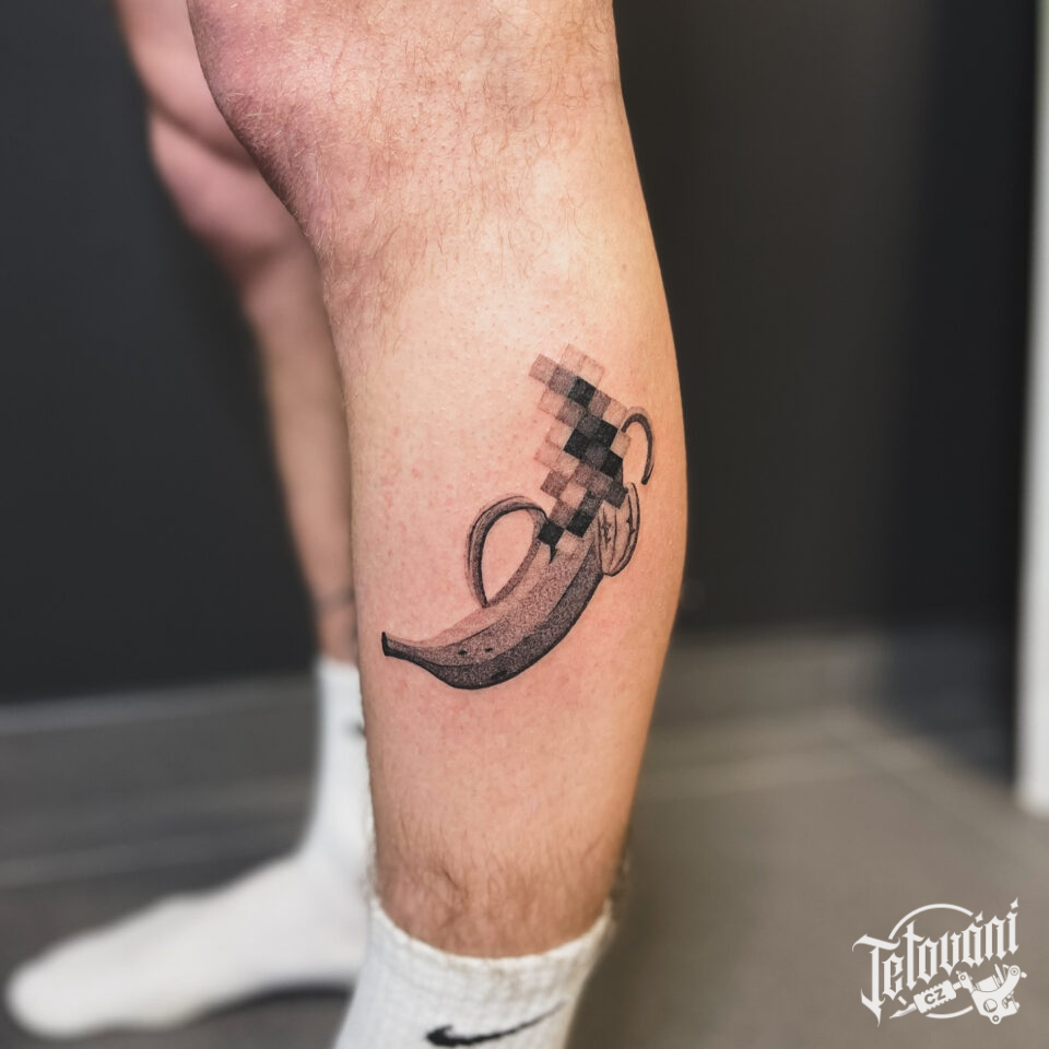 Tetování předměty, banán na lýtku