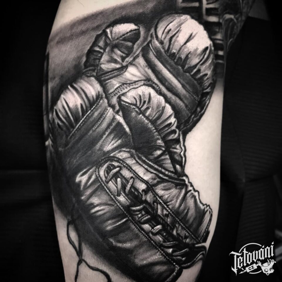 Tetování předměty, boxerské rukavice na rameni