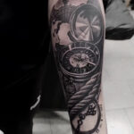 Tetování předměty, cestování, kompas s mapou na předloktí