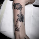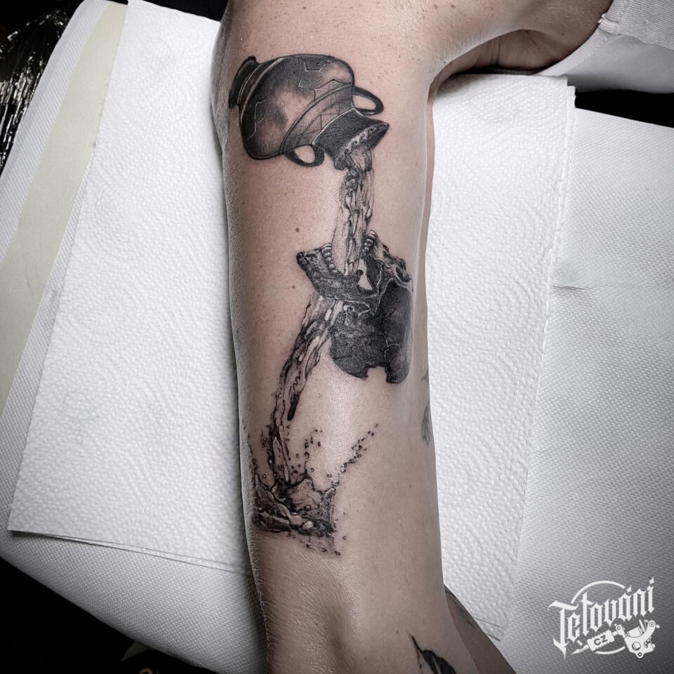 Tetování předměty, džbán a lebka na ruce