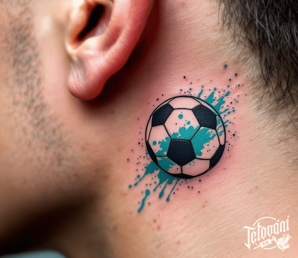 Tetování předměty, fotbalový míč na krku