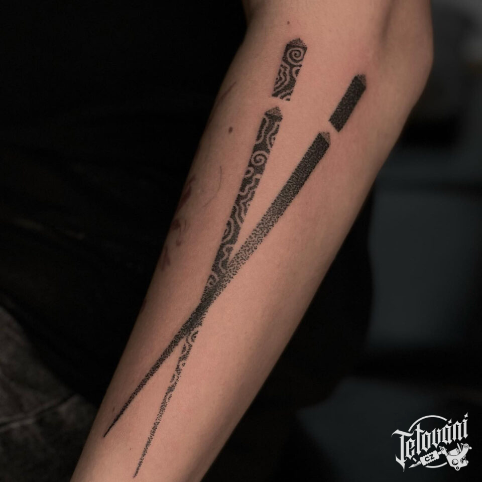 Tetování předměty, hůlky na předloktí