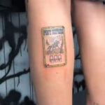 Tetování předměty, karta s nápisem a koněm na lýtku