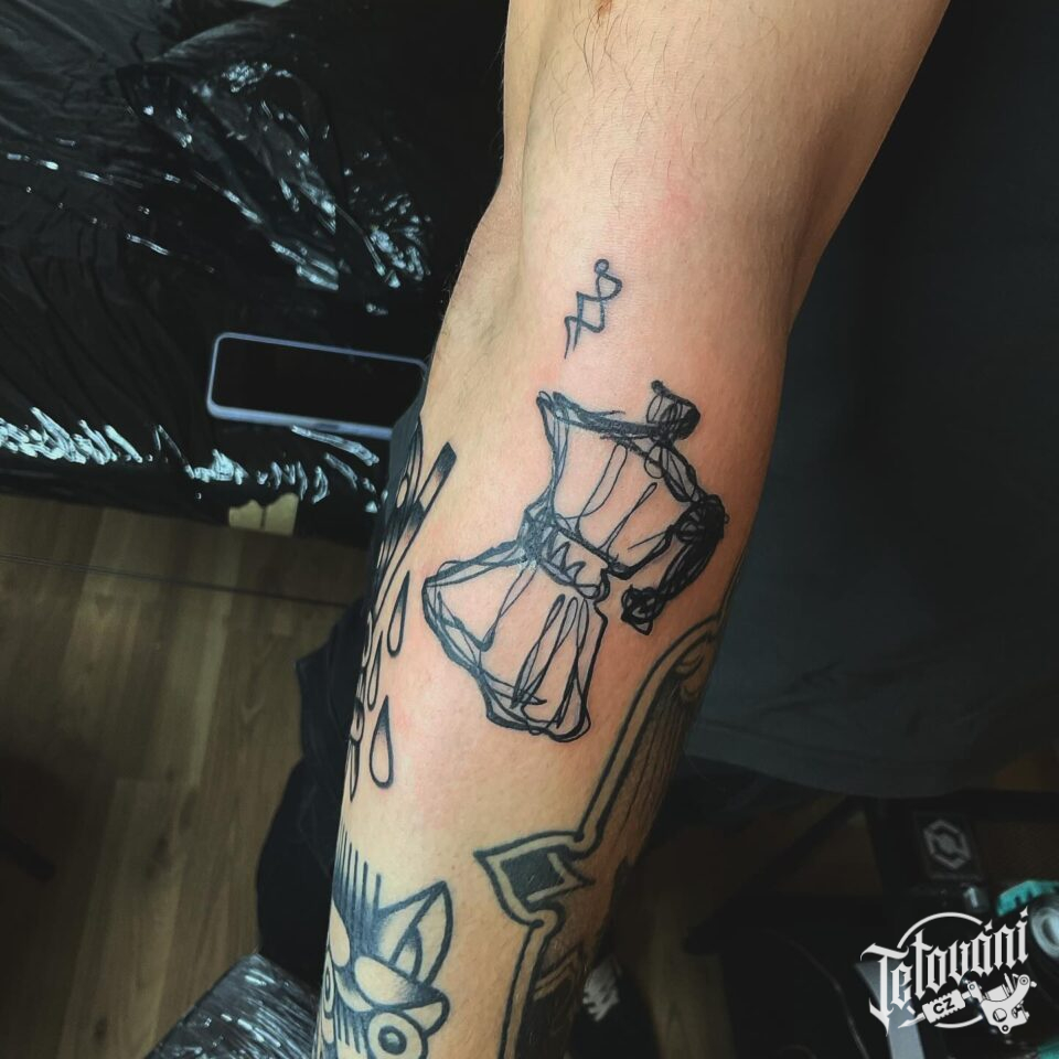 Tetování předměty, konvice na předloktí