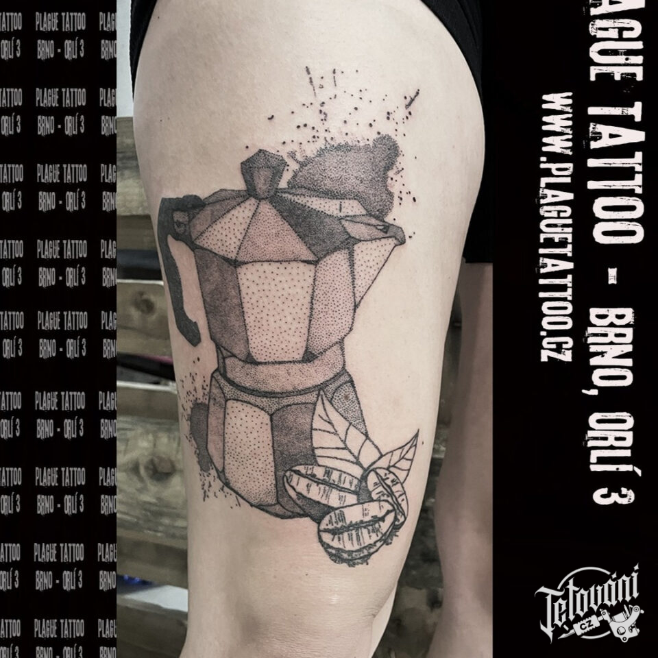 Tetování předměty, konvice na stehně