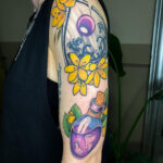 Tetování předměty, lahvička, květiny, perla na rameni