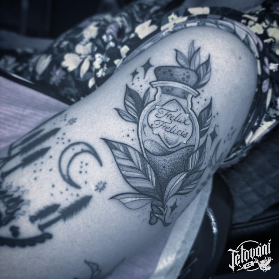 Tetování předměty, lahvička s lektvarem na rameni