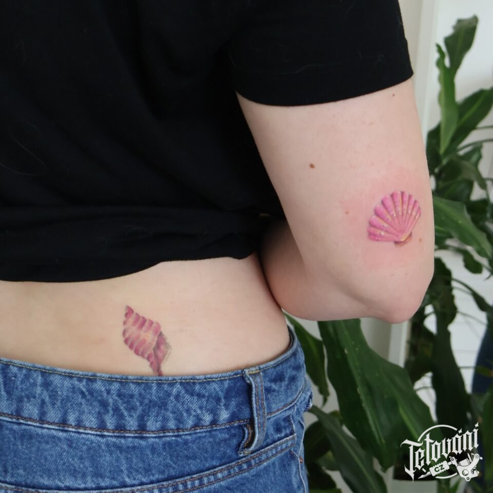 Tetování předměty, lastury, moře na ruku a bok