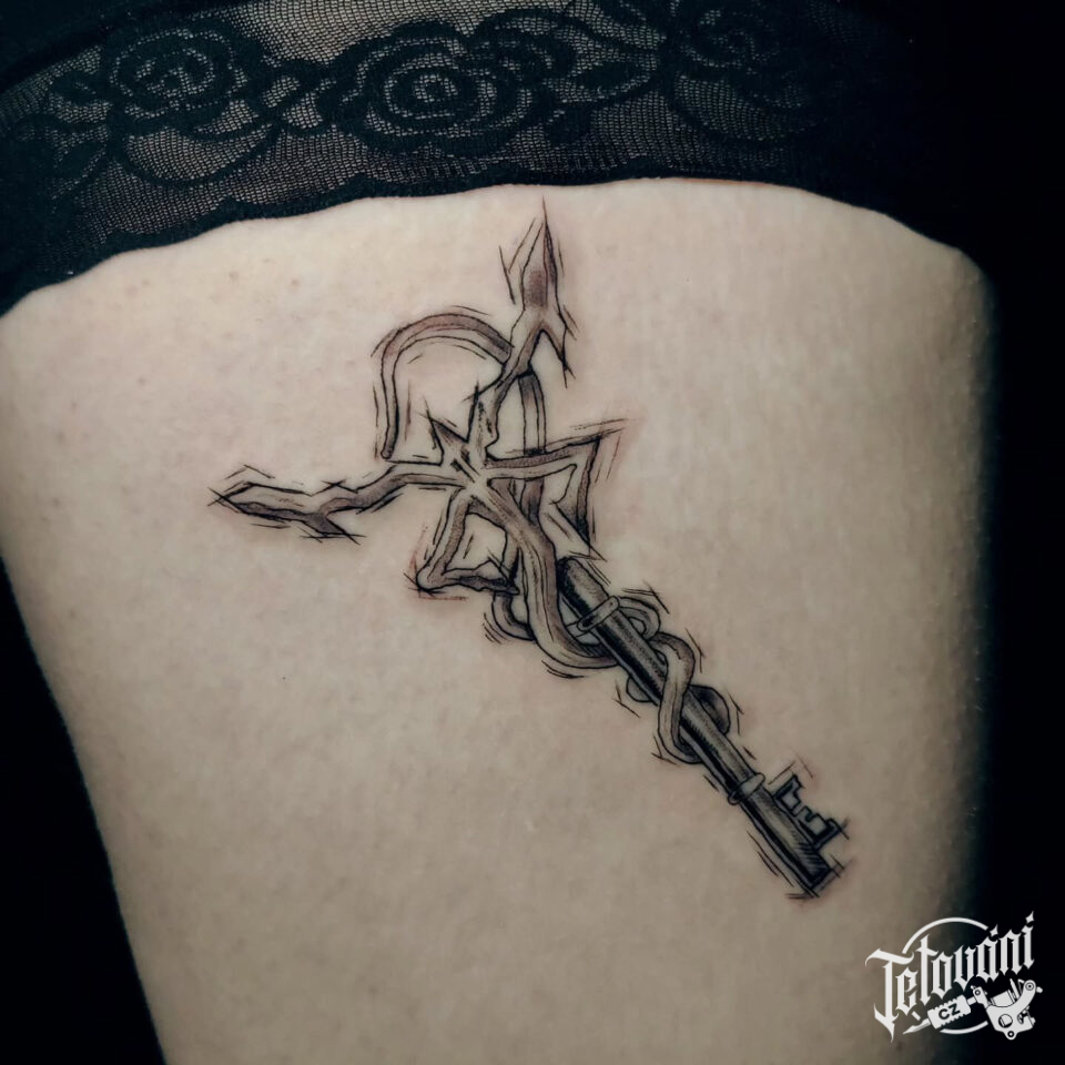 Tetování předměty na bok stehna