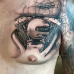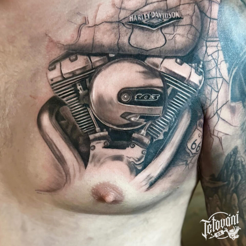 Tetování předměty motor z Harley Davidson na prso
