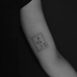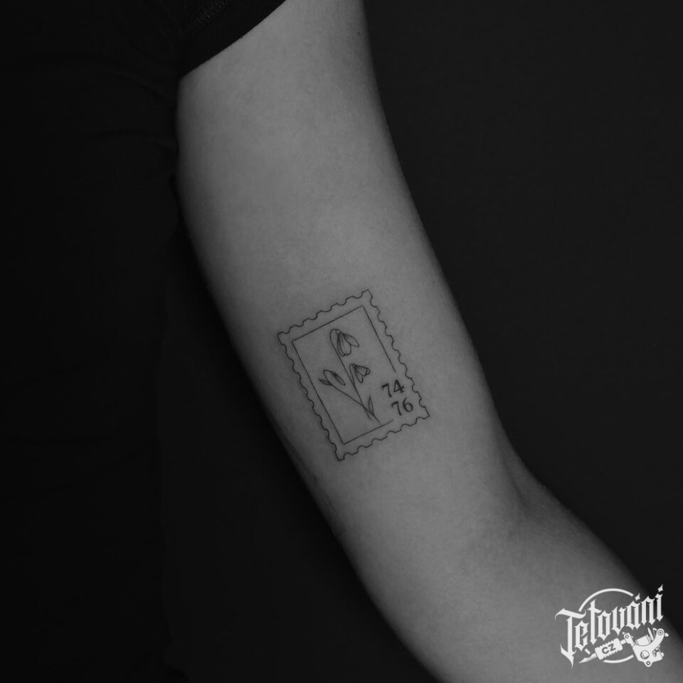 Tetování předměty, nápisy, čísla, květina, známka na předloktí
