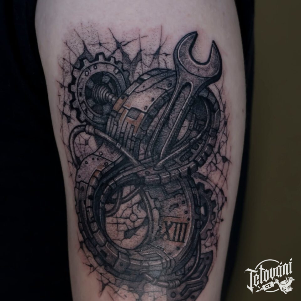 Tetování předměty, nářadí, římská čísla na rameno